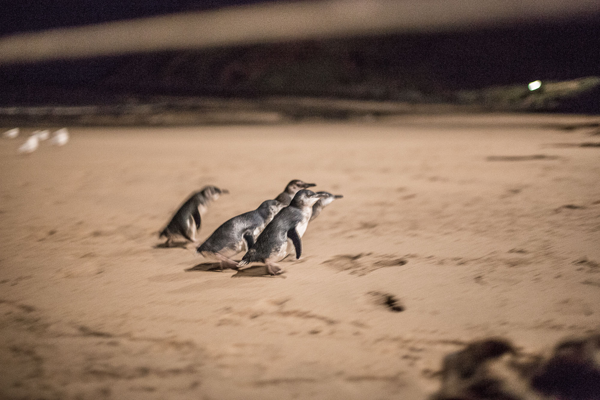 Nachdem wir am Samstag leider kein Glück hatten, so haben wir für diesen Tag Karten für die Penguin Parade bekommen. Das ganze Jahr über kommt eine Kolonie von ca. 1700 Fairy Penguins bei Sonnenuntergang an Land zu ihren „Unterkünften“. Die kleinen Tierchen sind kaum größer als Möwen und total witzig anzuschauen. Man ist da wirklich nah dran.